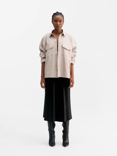 Ahlvars Kaia Overshirt är den perfekta kombinationen av avslappnad coolness och sofistikerad design. Tillverkad i en mjuk bomullsblandning med en boxig silhuett, bröstfickor blir den snabbt ett stilrent nyckelplagg i garderoben.