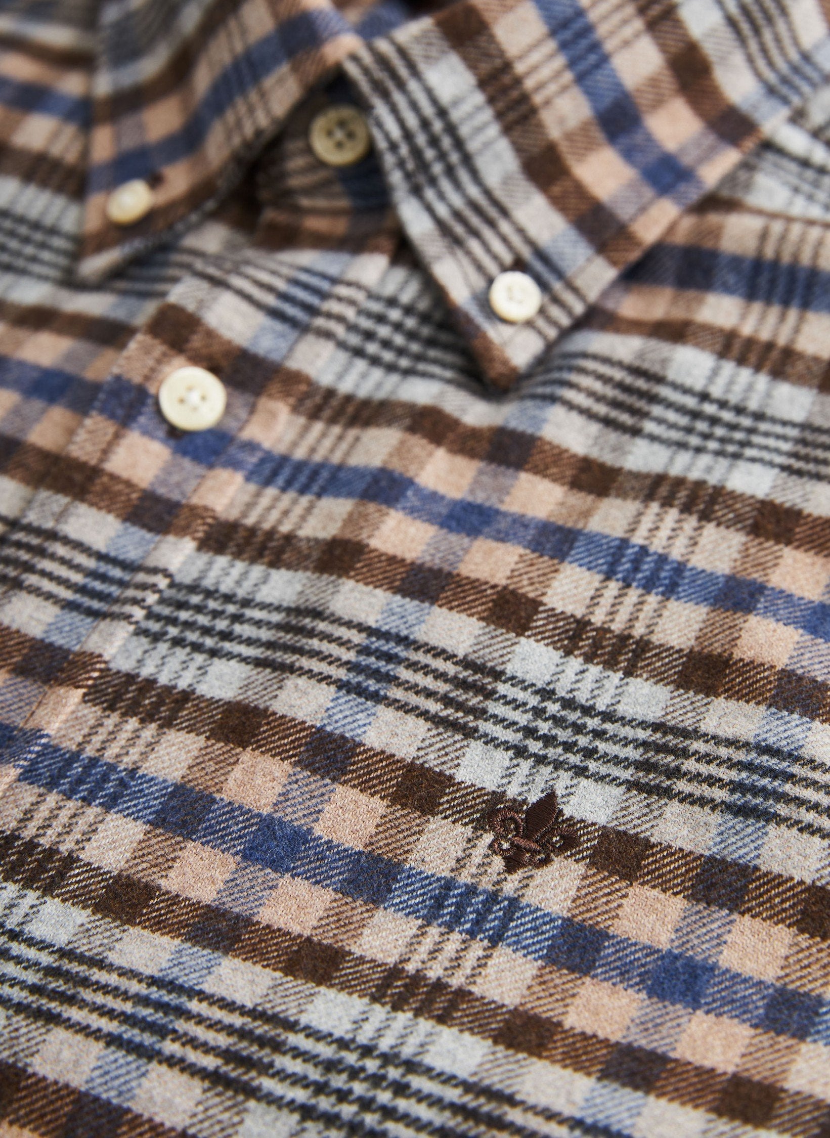 Flannel Check Shirt från Morris är en modern tolkning av den klassiska rutiga skjortan, skräddad i mjukt borstad bomullsflanell. Den är varm men samtidigt lätt, vilket gör den lika självklar att bära stängd under en kavaj som öppen över en t-shirt. Färgpaletten går i jordiga gröna, djupa röda och mjuka blå toner – perfekta att kombinera med denim, manchester eller ull för en höstlig och tidlös look.