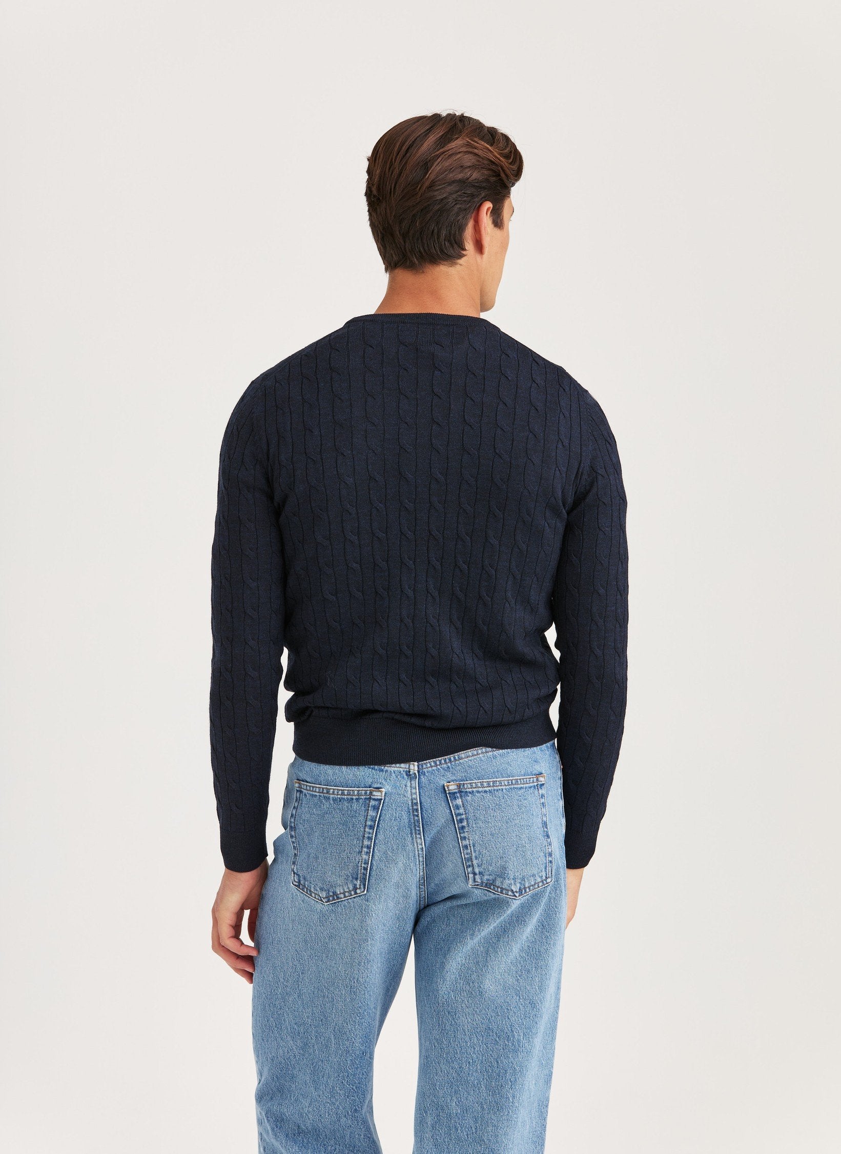 Morris Merino Cable Oneck – en exklusiv kabelstickad tröja i merinoull med tidlös elegans och modern komfort.